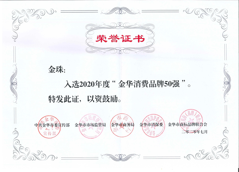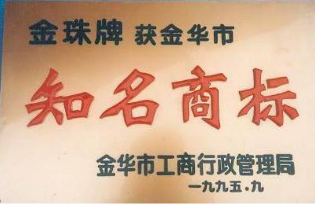 “金珠”牌商標獲得金華市“知名商標”稱號