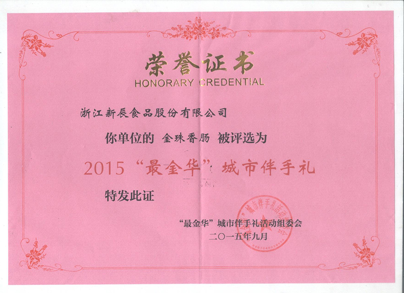 9月“金珠香腸”被評選為2015年度“城市伴手禮
