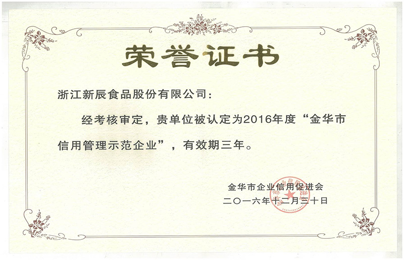 被評為2017年度“金華市誠信企業”,“區重點骨干工業企業,“浙江省級骨干農業龍頭企業