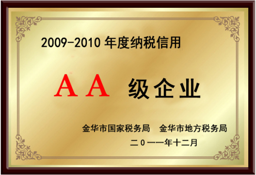 榮獲2009-2010年度納稅信用“aa級企業,“范本建設單位”